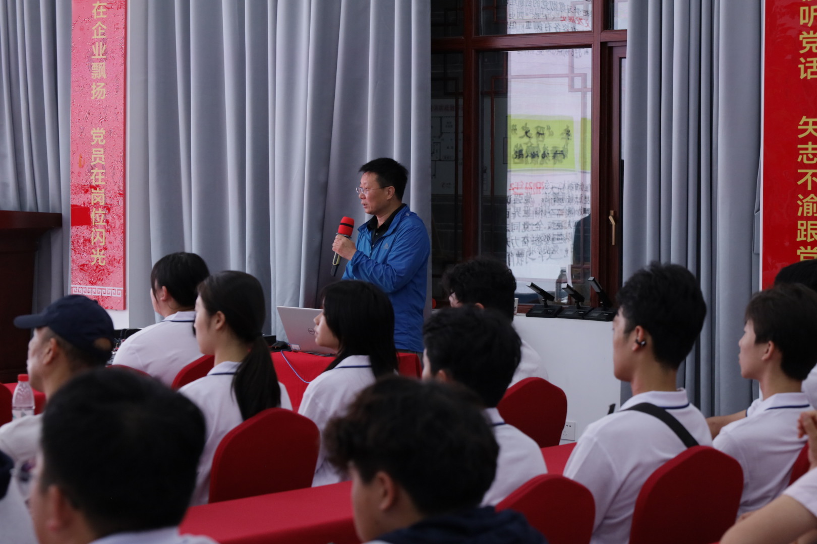 现场参观后,在雷天明纪念馆馆内报告厅,十堰广播电视台高级记者朱江老师以《鄂西北抗战史》为题,为师生们带来了一场内容丰富、思想深刻的讲座。朱江老师结合大量珍贵的历史资料和实地采访案例,系统梳理了鄂西北地区在抗日战争中的战略地位,详细讲述了十堰军民开展游击战争、保卫家乡的壮阔历程,深入解读了新媒体时代鄂西北抗战精神的传承和弘扬。引导师生从历史中感悟初心使命,从精神中汲取奋进力量。